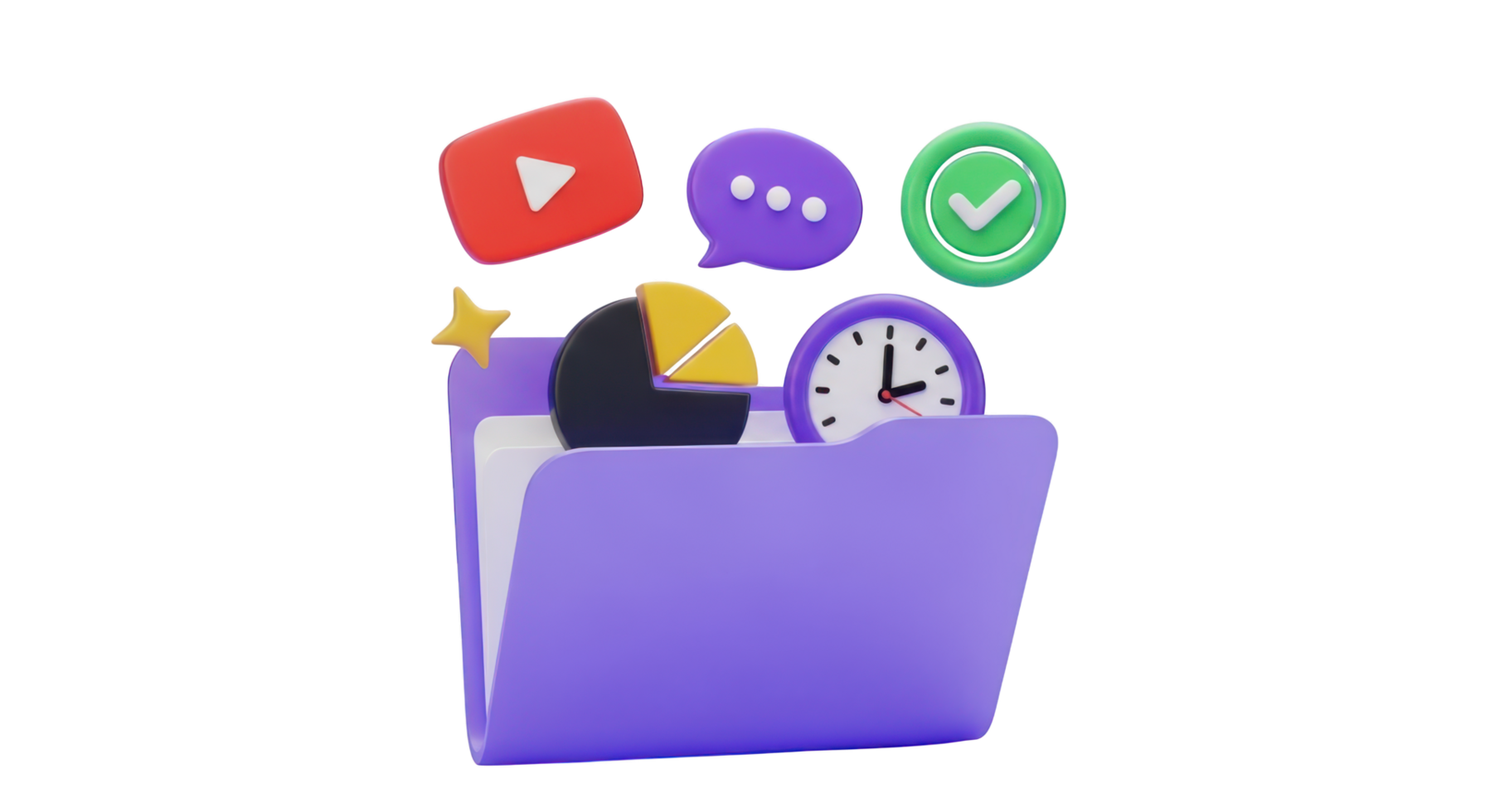 3 D Folder with Icons and Data Visualization Elements isolated on a transparent background png