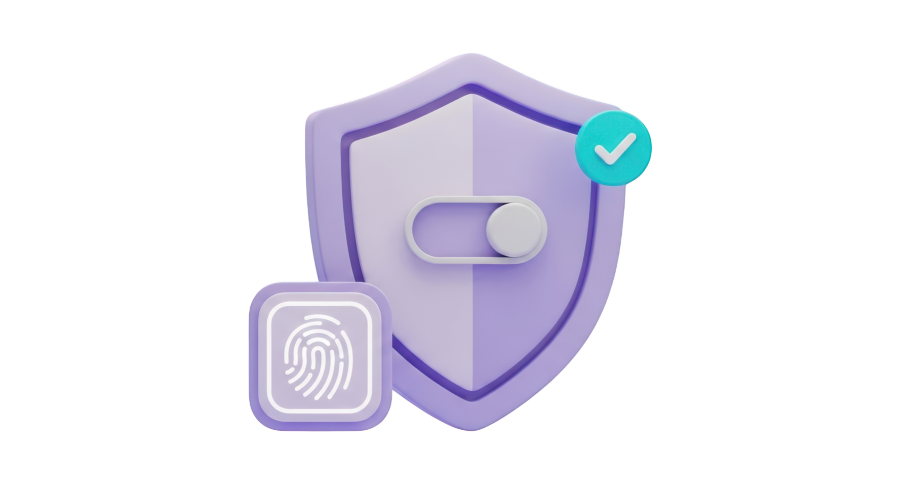 3 D Security Shield with Fingerprint and Toggle Switch isolated on a transparent background png