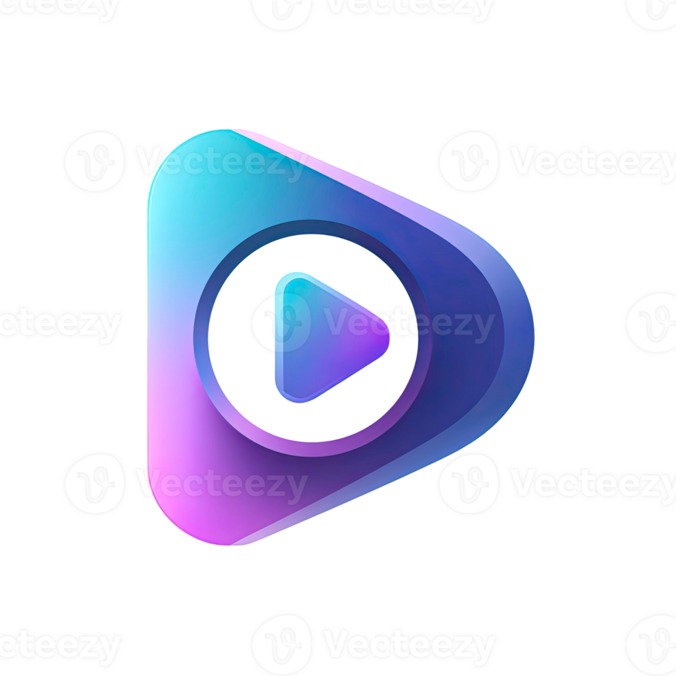 Modern gradient play button icon with vibrant colors and rounded edges isolated on transparent background Pro PNG
