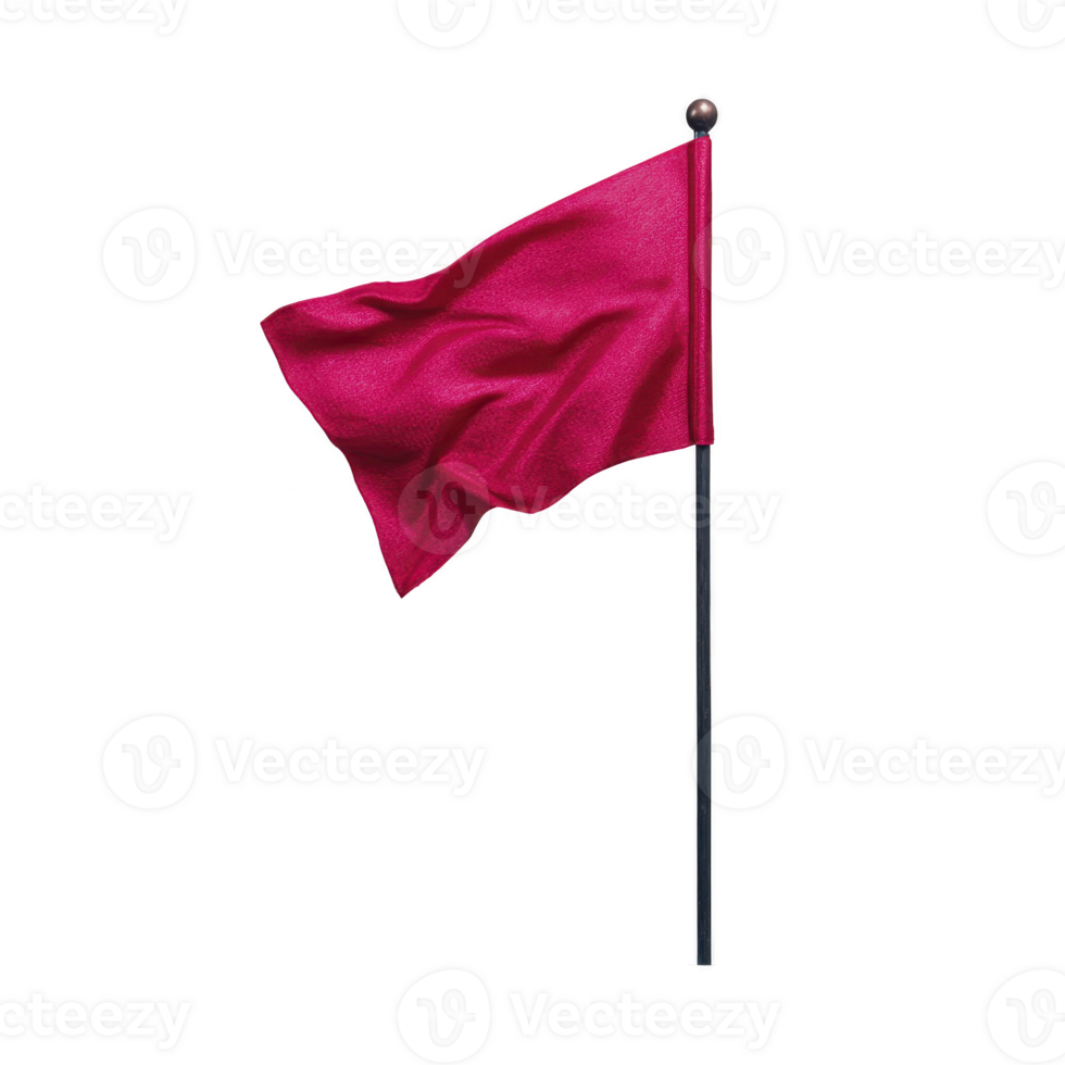Red flag waving on metal pole, isolated on transparent background, symbolizing warning, alert, or danger, with realistic fabric texture and dynamic movement Pro PNG