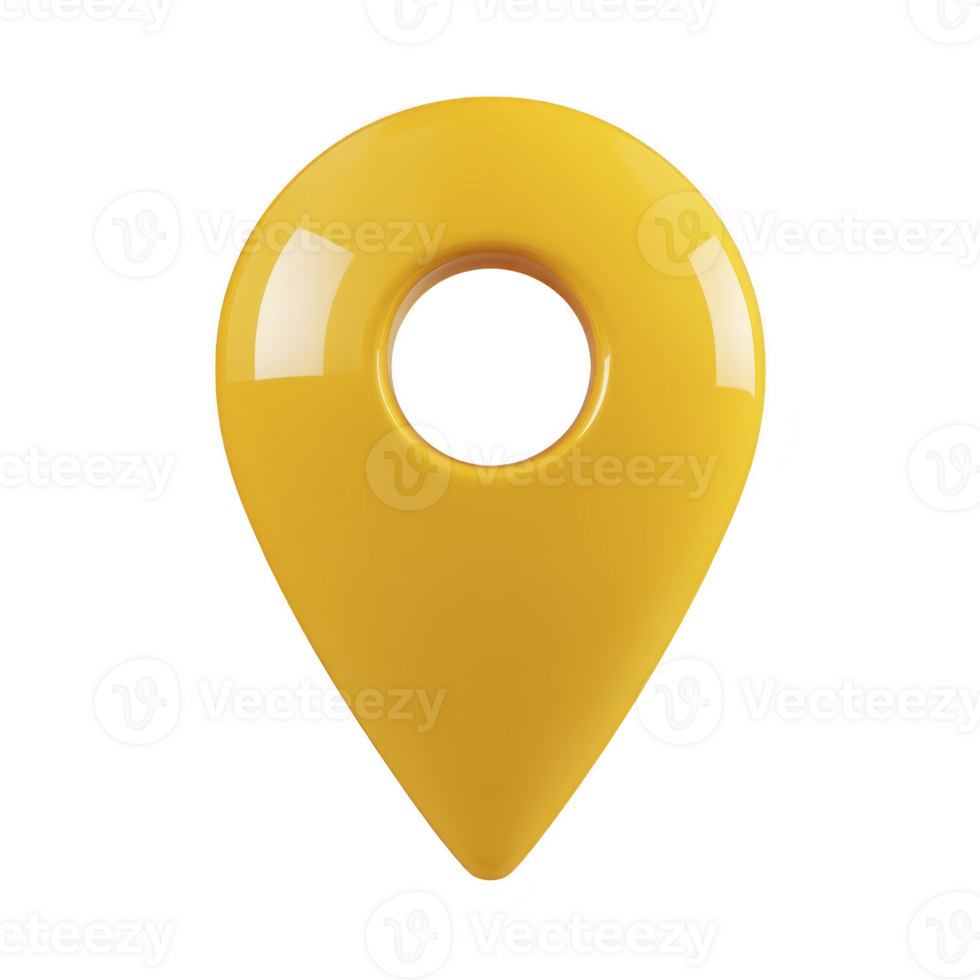 Yellow map pin location marker navigation symbol glossy finish 3D illustration isolated on transparency background modern design travel direction cheerful simple style Pro PNG