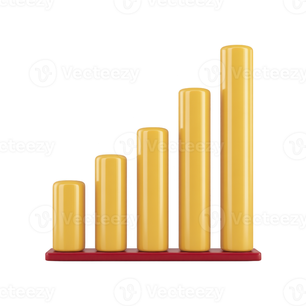 3D yellow bar chart glossy finish five vertical columns red base isolated on transparent background modern business infographic growth concept data visualization upward trend minimal style Pro PNG