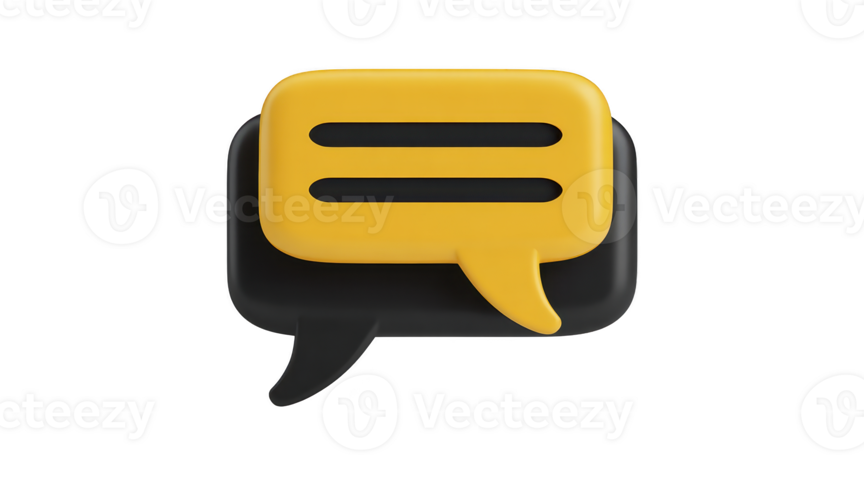 Yellow chat bubble icon with transparency background, modern 3D speech bubble symbol, communication and message concept, isolated transparent background, suitable for digital interface and social Pro PNG