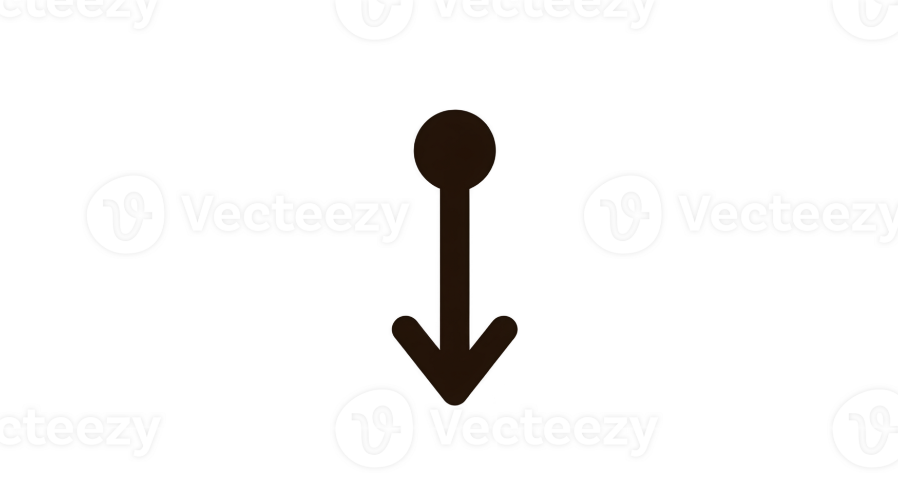 Downward arrow icon with bold black outline, simple design, and circular top, ideal for user interface, navigation, or download button, conveying direction or movement Pro PNG