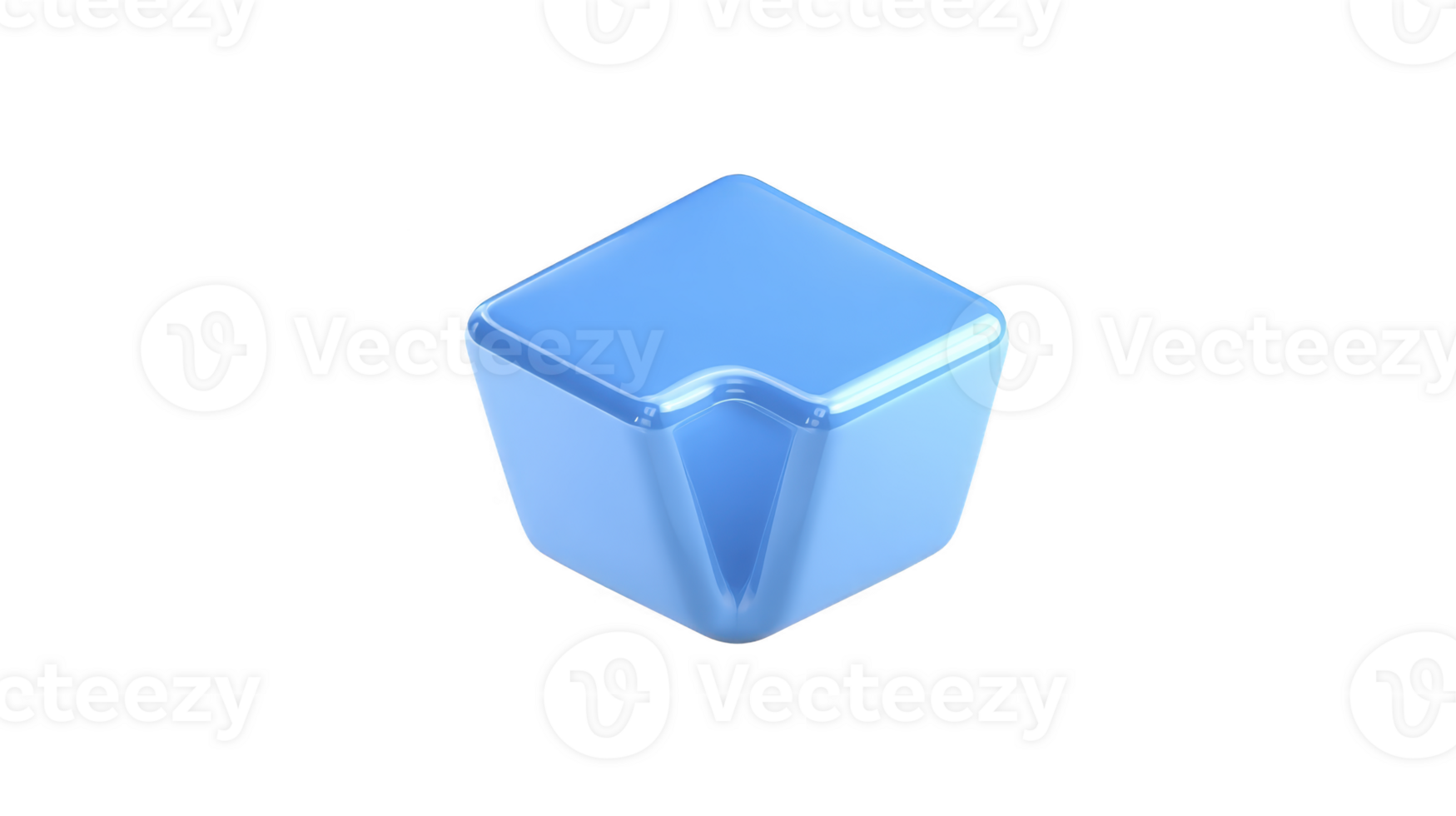 Blue geometric cube with glossy surface, modern abstract shape, isolated on transparency background, minimalistic design, 3D rendering, suitable for technology or creative concept visuals Pro PNG