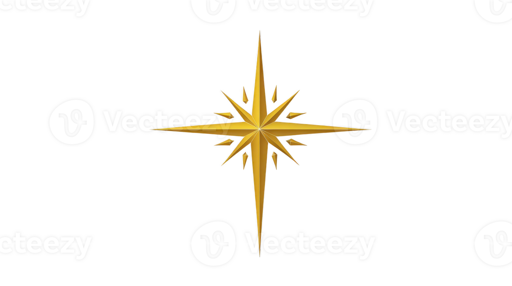Golden compass rose star with sharp points metallic shine and symmetrical design symbolizing navigation direction and guidance suitable for logos icons or decorative elements Pro PNG