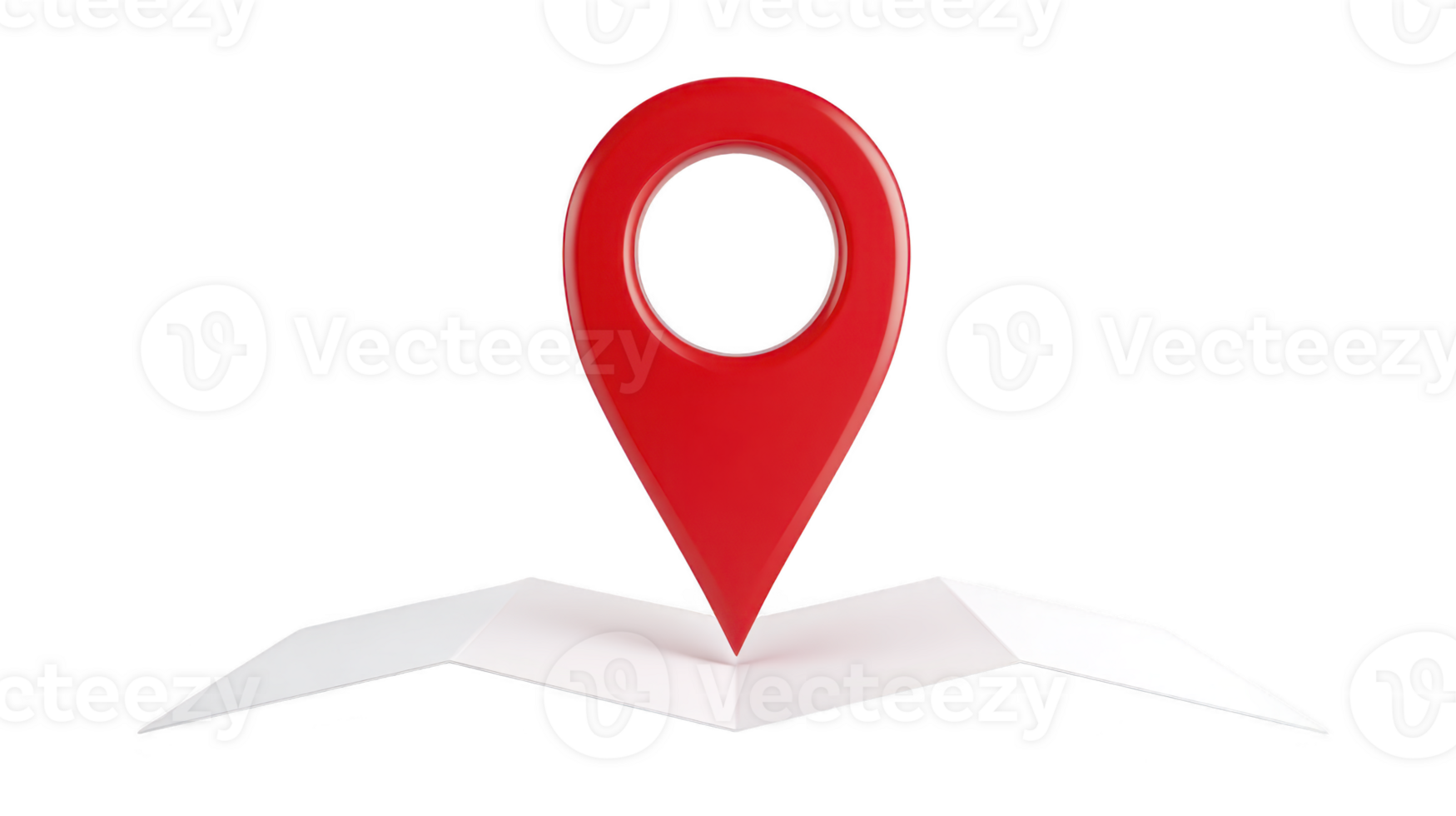 Red location pin on folded white paper map, symbolizing navigation, travel, and destination, with clean and modern design for concepts of direction, finding places, or route planning Pro PNG