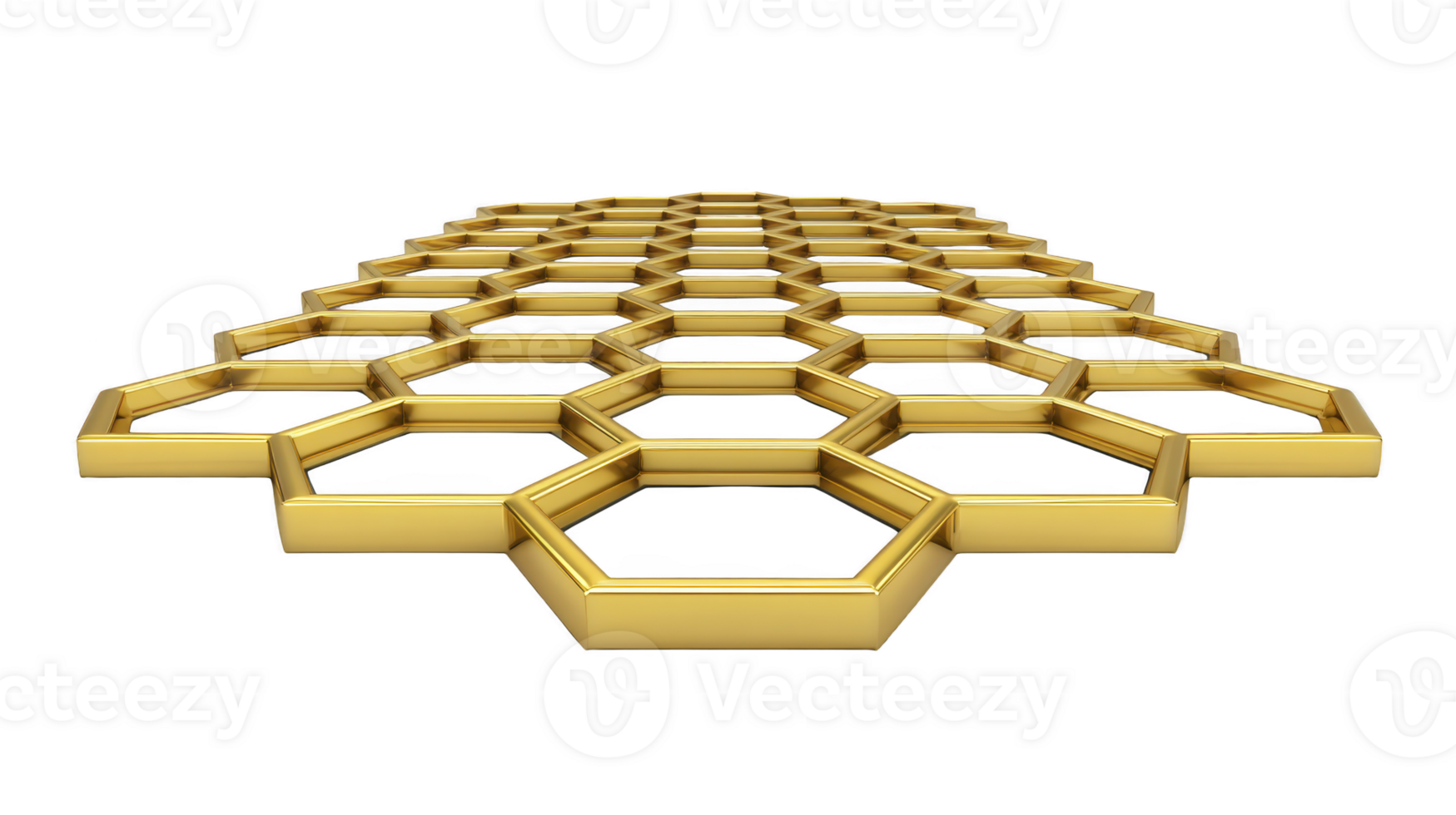 Golden hexagon pattern metallic honeycomb structure geometric abstract background 3D rendering futuristic design luxury shiny isolated on white modern art Pro PNG