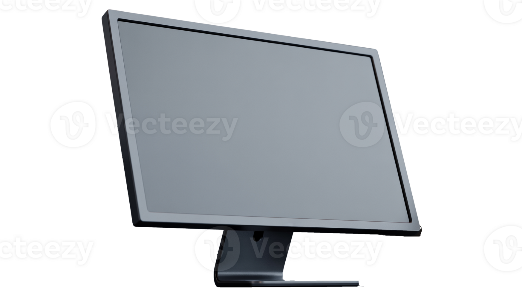 A computer monitor with a gray screen is displayed in a studio setting on transparent background Pro PNG
