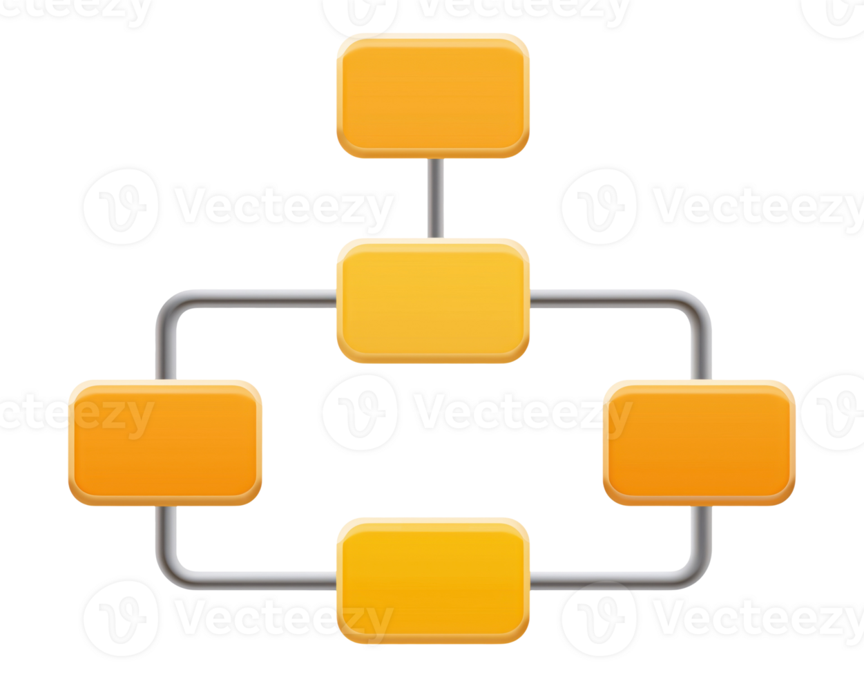 Multi-level organizational chart with orange and yellow connected boxes in structured layout, isolated on transparent background Pro PNG