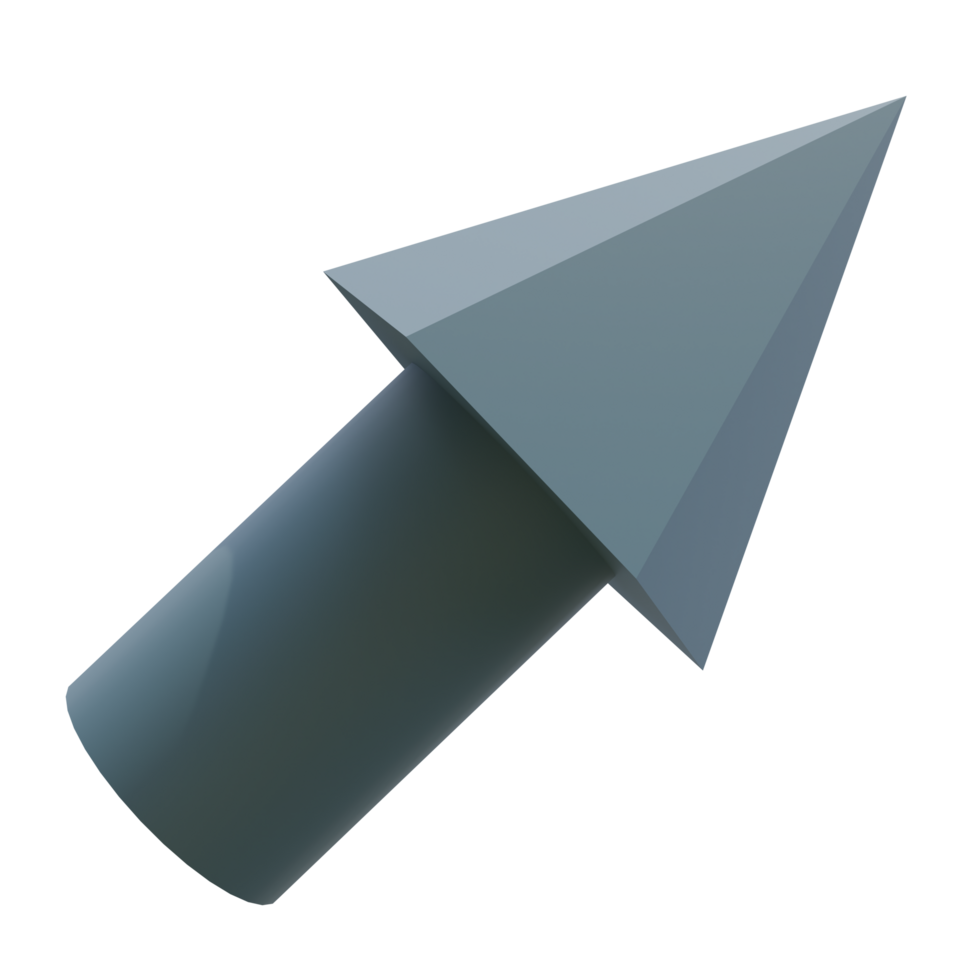 A gray, 3D arrow points upwards diagonally, cylindrical base transitioning to a triangular head, soft lighting, against a transparent checkered background. Free PNG