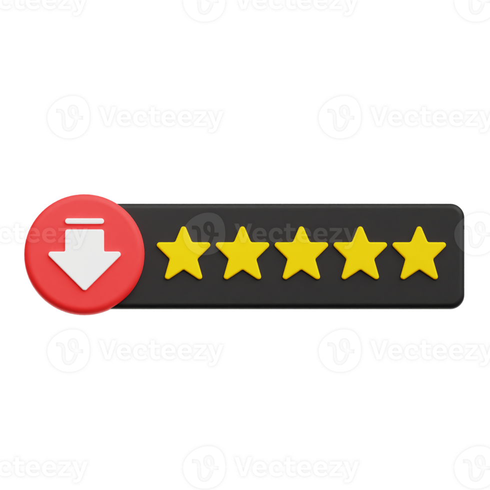 Decrease 5 Star Rating 3D Icon Isolated On Transparent Background Pro PNG