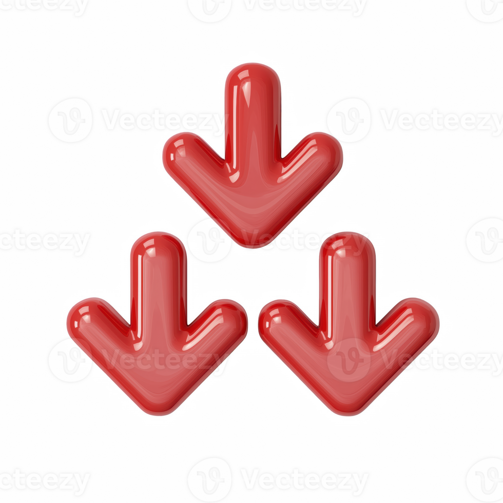 3D red downward arrows icon for decrease and decline, down trend symbol isolated on transparent background Pro PNG