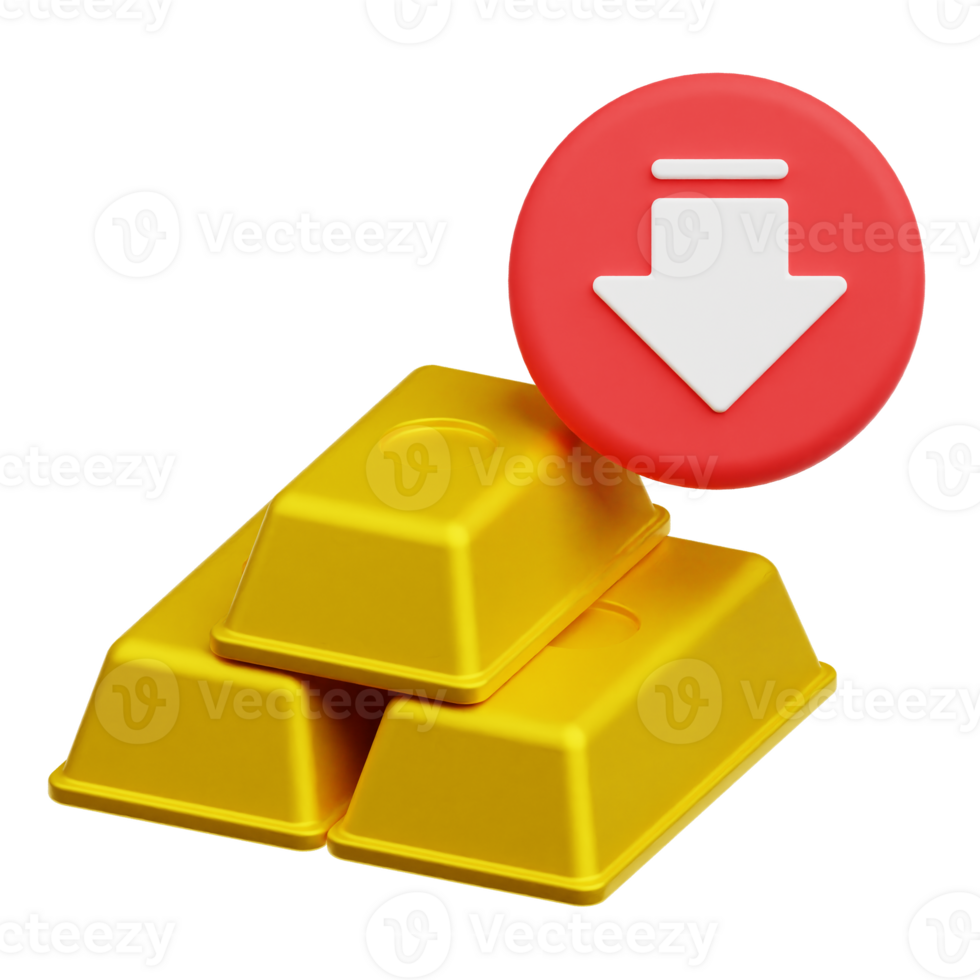 Decrease Gold Bars 3D Icon Isolated On Transparent Background Pro PNG