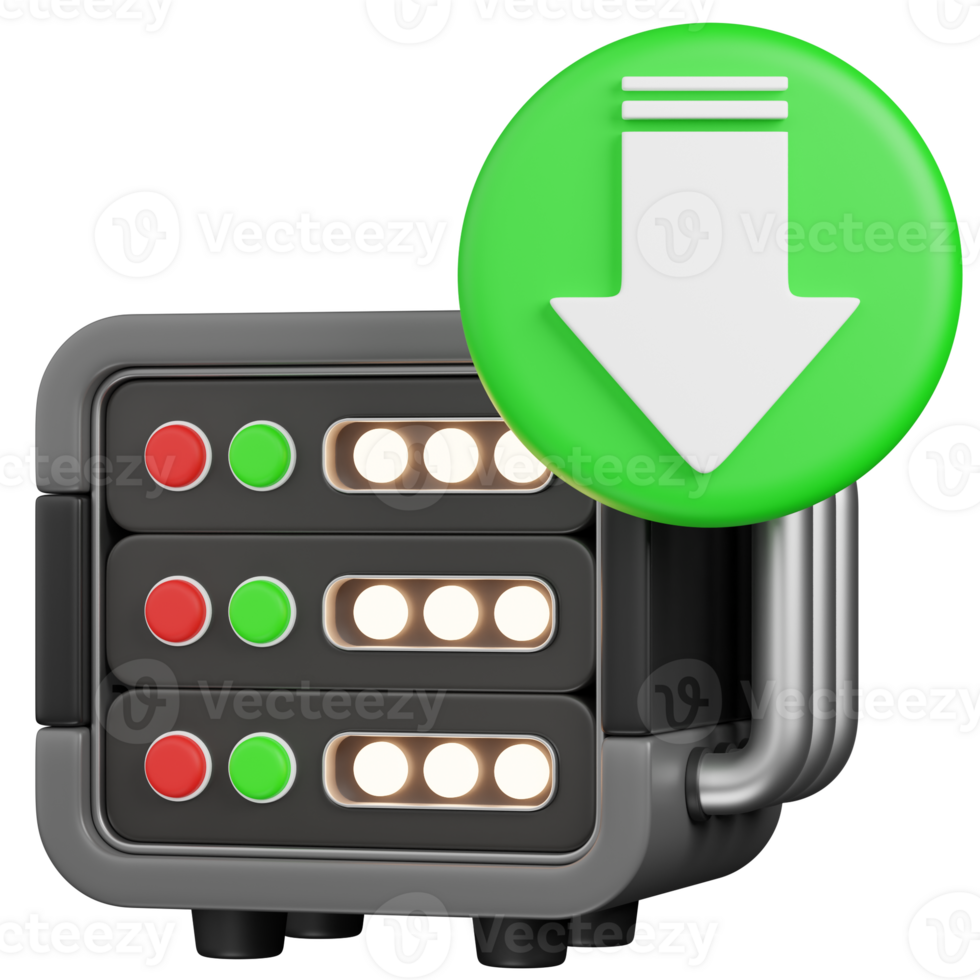 3D RENDER SERVER RACK WITH DECREASE OR DOWNLOAD ARROW ARROW ICON Pro PNG