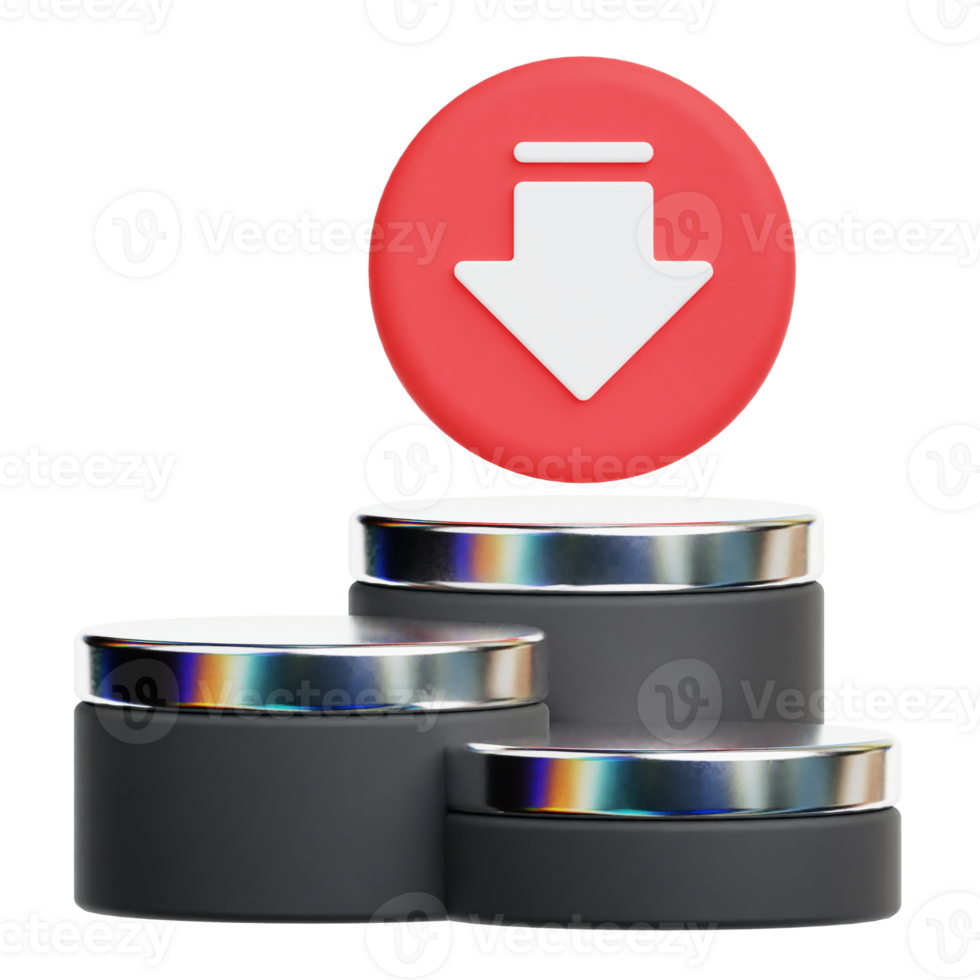 Decrease Chrome Podium 3D Icon Isolated On Transparent Background Pro PNG