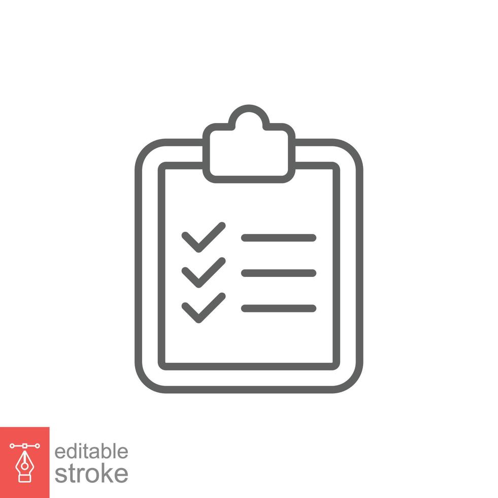 Clipboard checklist icon. Simple outline style. Document with checkmark, business agreement concept. Thin line vector illustration isolated on white background. Editable stroke EPS 10. Pro Vector