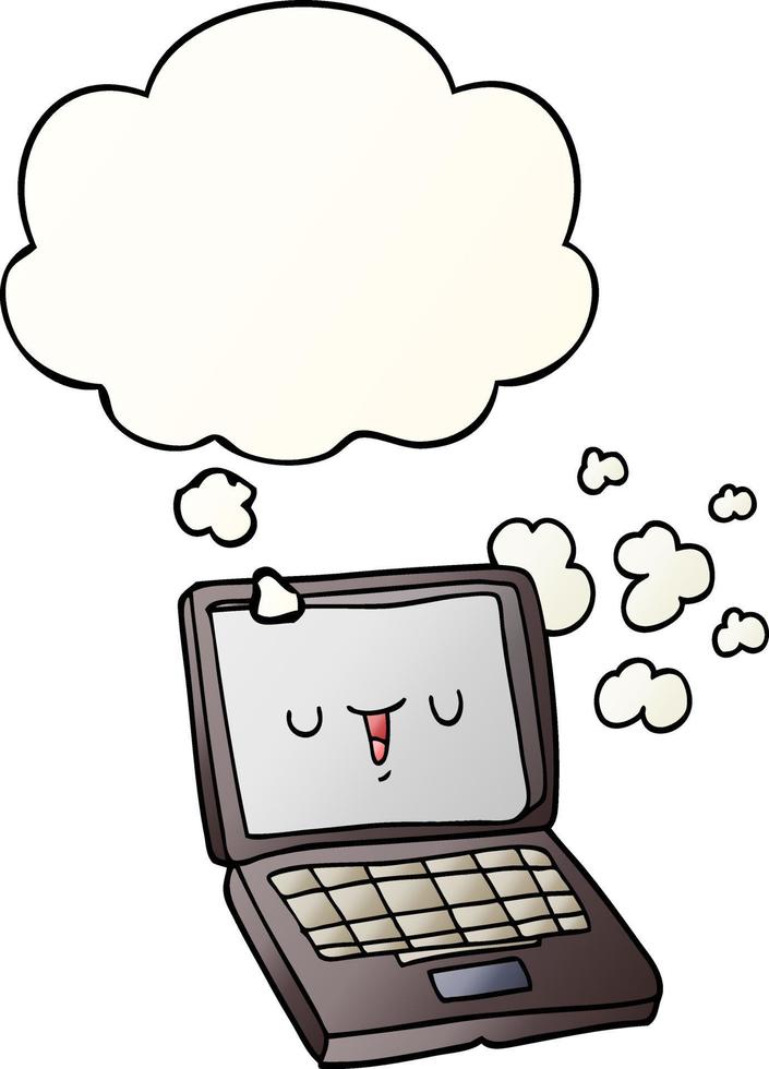 cartoon computer and thought bubble in smooth gradient style Pro Vector and Pro SVG