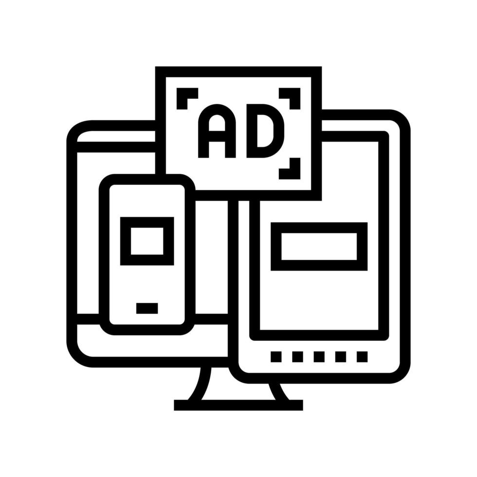 ad on computer phone and tablet display line icon vector illustration Pro Vector