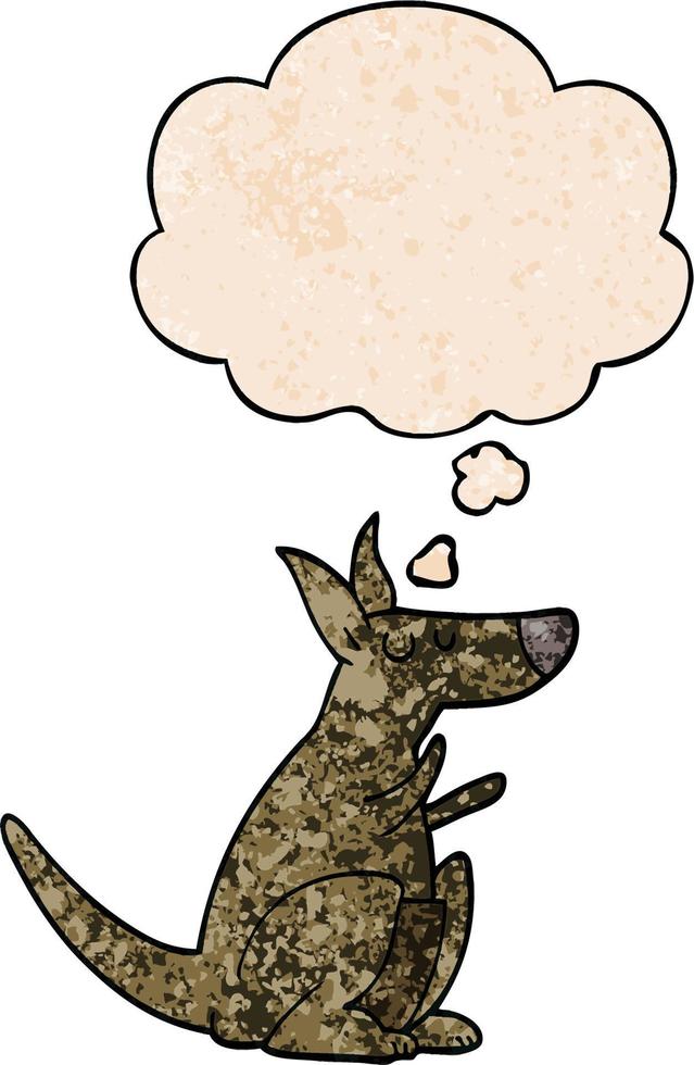 cartoon kangaroo and thought bubble in grunge texture pattern style Pro Vector