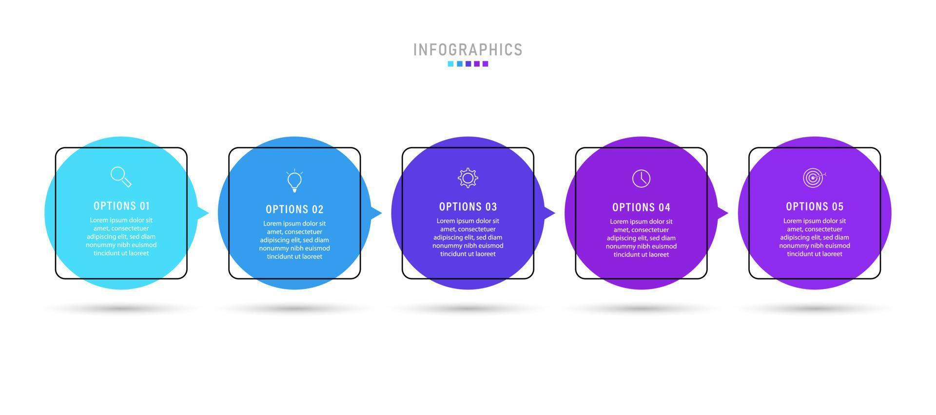 Vector Infographic label design template with icons and 5 options or steps. Can be used for process diagram, presentations, workflow layout, banner, flow chart, info graph. Pro Vector