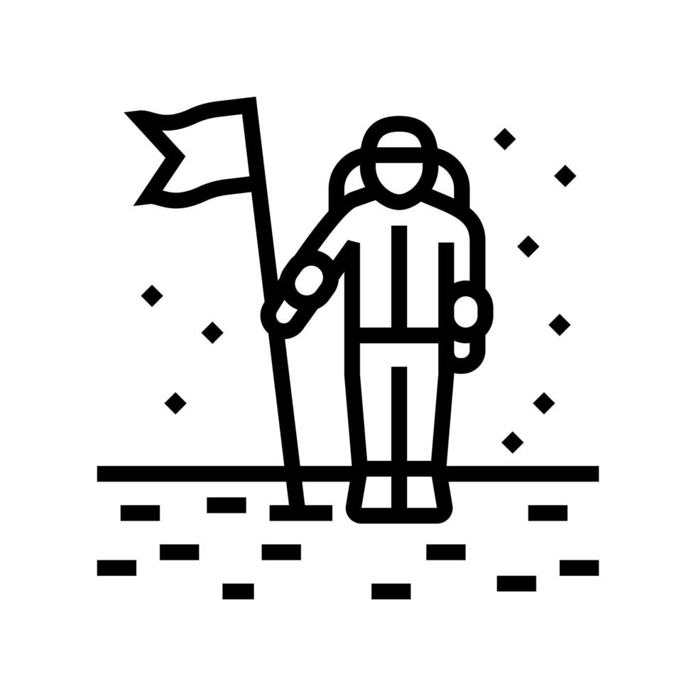 astronaut installing flag on planet surface line icon vector illustration Pro Vector