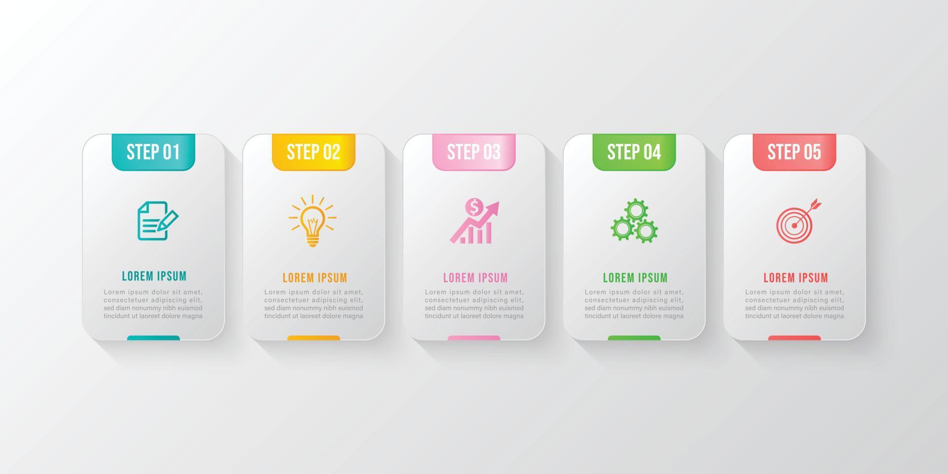 Timeline infographic design element and number options. Business concept with 5 steps. Can be used for workflow layout, diagram, Vector business template for presentation. Pro Vector