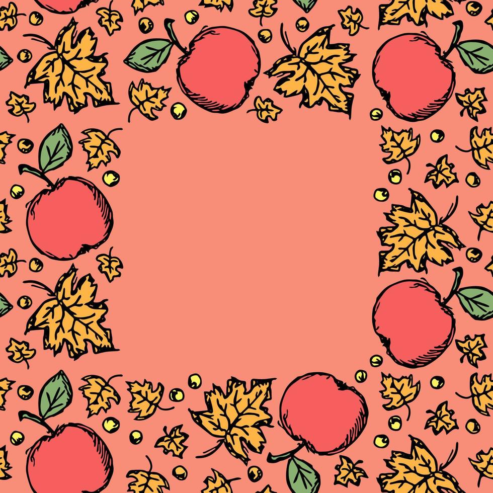 Red apples and maple leaves background with place for text. Seamless autumn pattern with apples and leaves. Apple pattern Pro Vector