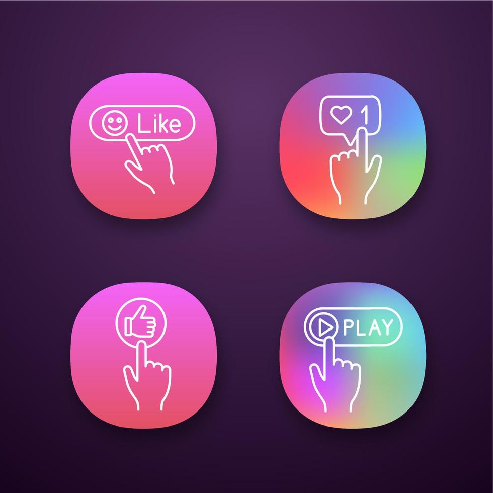 Click app icons set. Likes counter, play, like. UIUX user interface. Web or mobile applications. Vector isolated illustrations Pro Vector