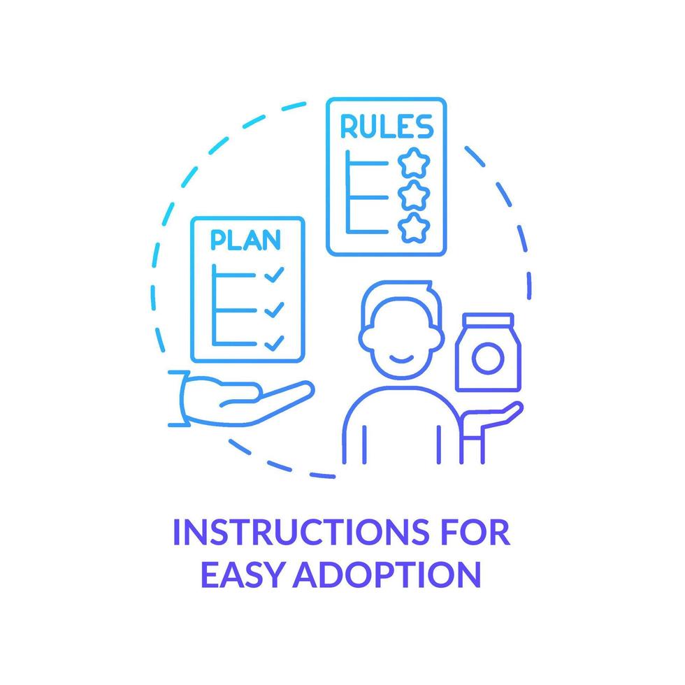 Instructions for easy adoption blue gradient concept icon. Product setup. Solving for customer needs abstract idea thin line illustration. Isolated outline drawing. Pro Vector and Pro SVG