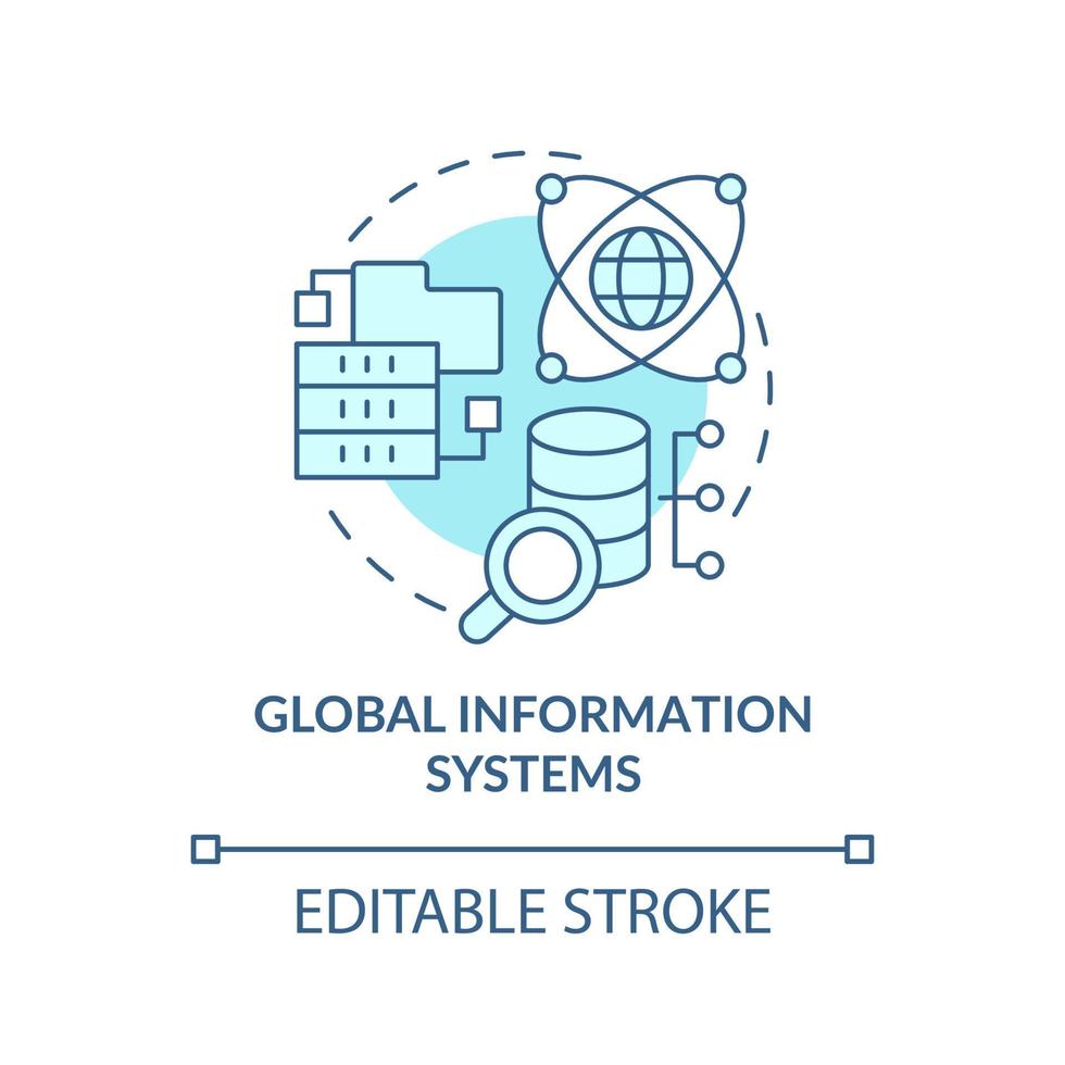 Global information systems turquoise concept icon. Storing and analyzing data abstract idea thin line illustration. Isolated outline drawing. Editable stroke. Pro Vector
