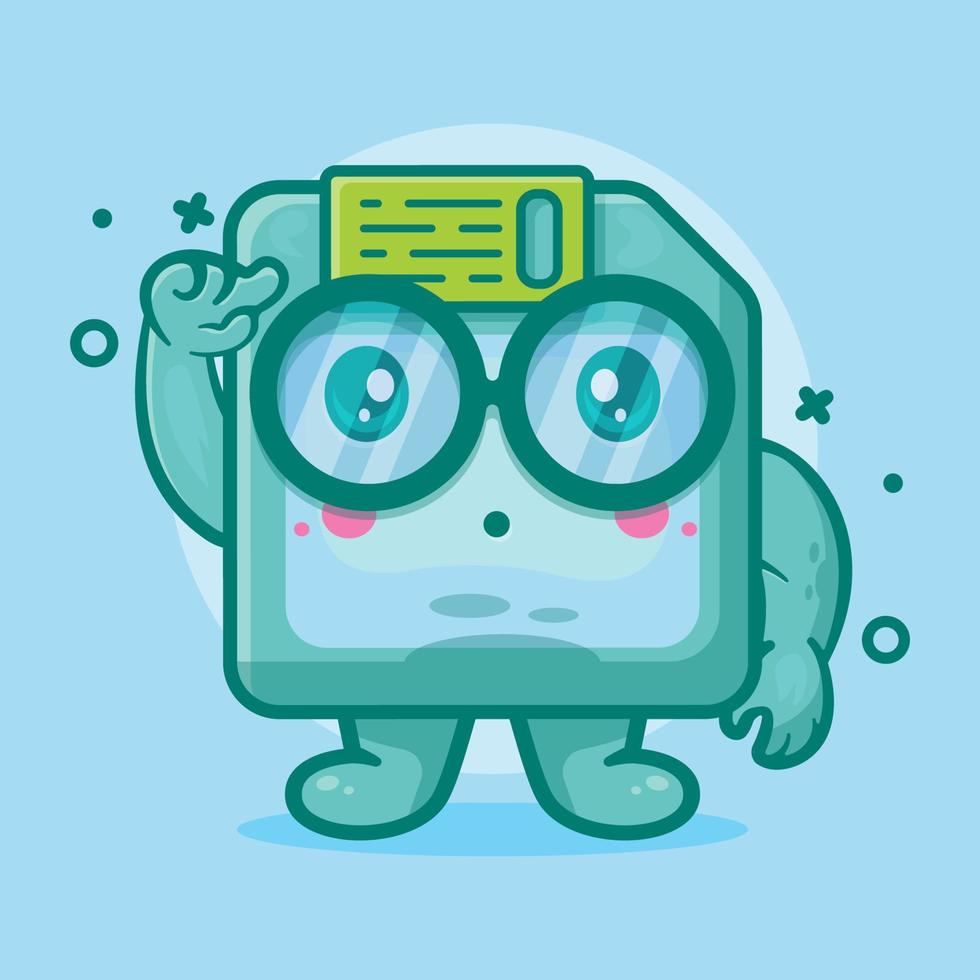 genius floppy disk character mascot with think expression isolated cartoon in flat style design Pro Vector
