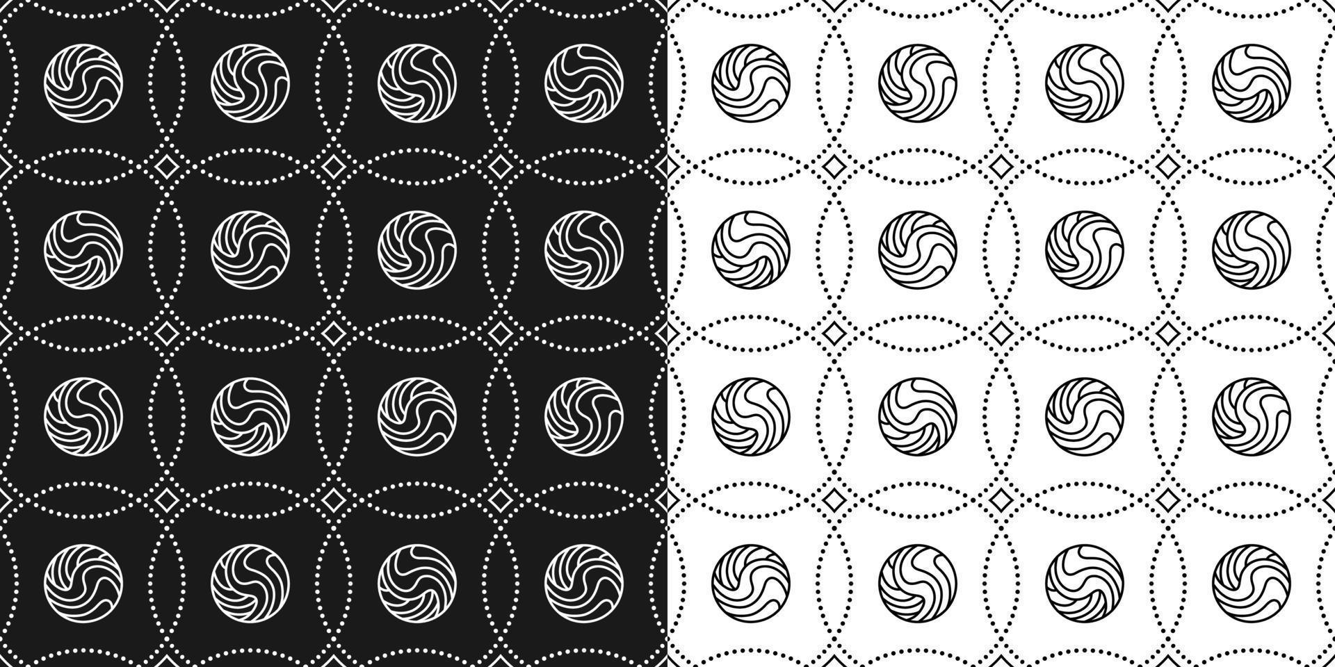 Seamless pattern with linear spheres in dotted rounded grid. Black white geometric regular pattern. Vector Pro Vector