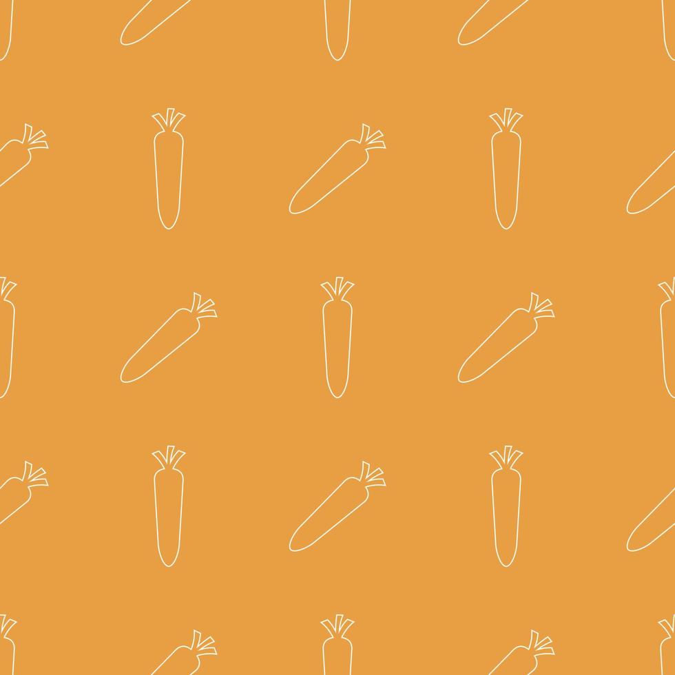 Seamless pattern with line style icon of carrot on orange background. Vector illustration for design, web, wrapping paper, fabric, wallpaper. Pro Vector