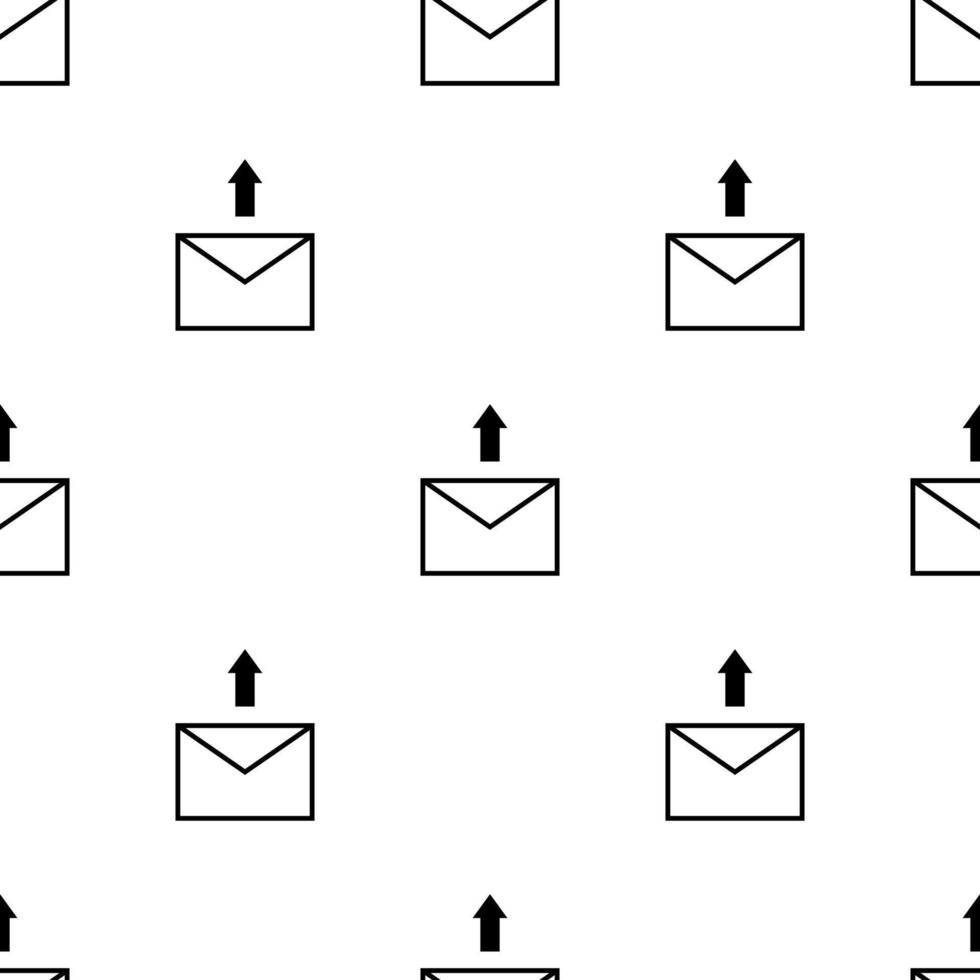 Seamless pattern with send letter icon on white background. Black arrow. Business concept. Vector illustration for design, web, wrapping paper, fabric Pro Vector