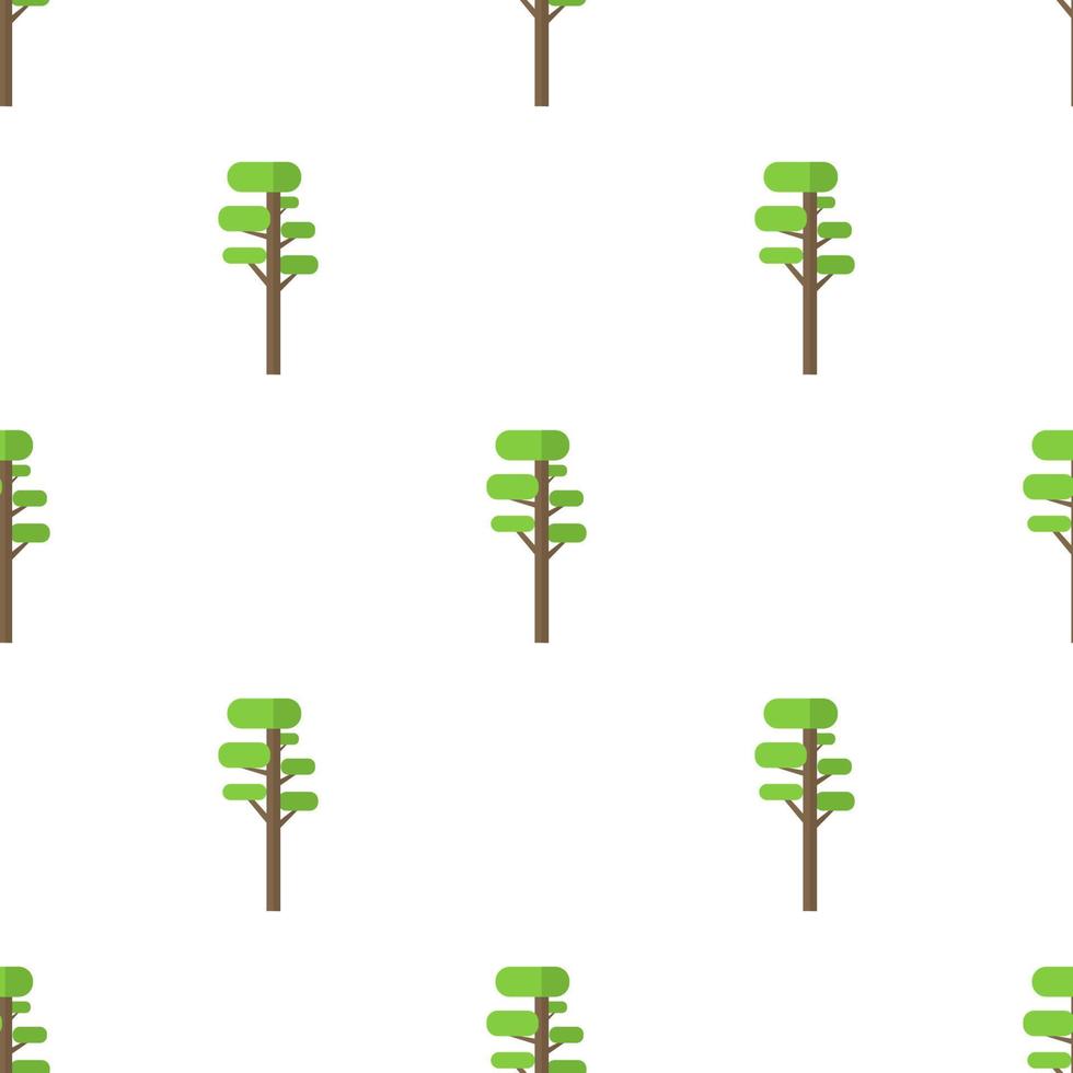 Seamless pattern with flat green tree icon on white background. Vector illustration for design, web, wrapping paper, fabric, wallpaper. Pro Vector