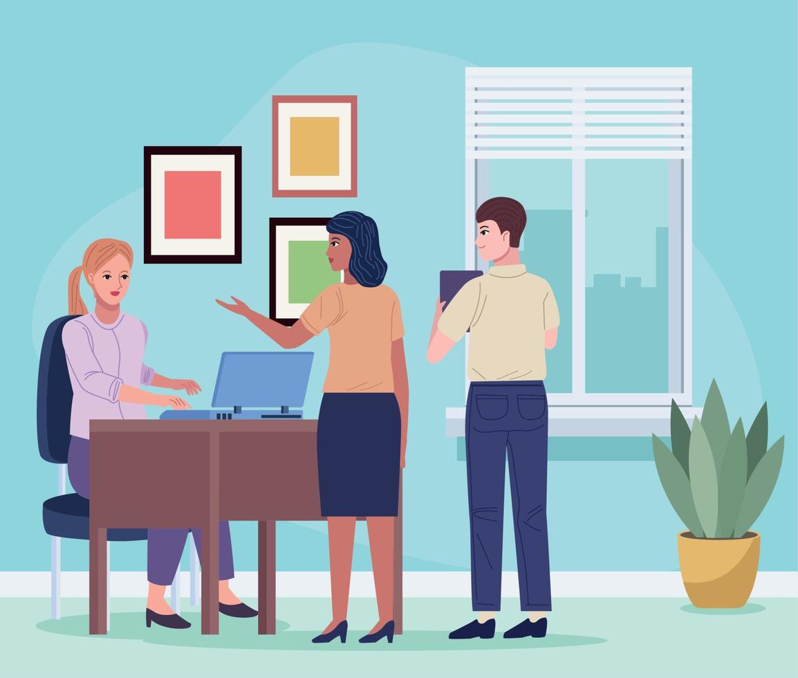 three persons working Free Vector