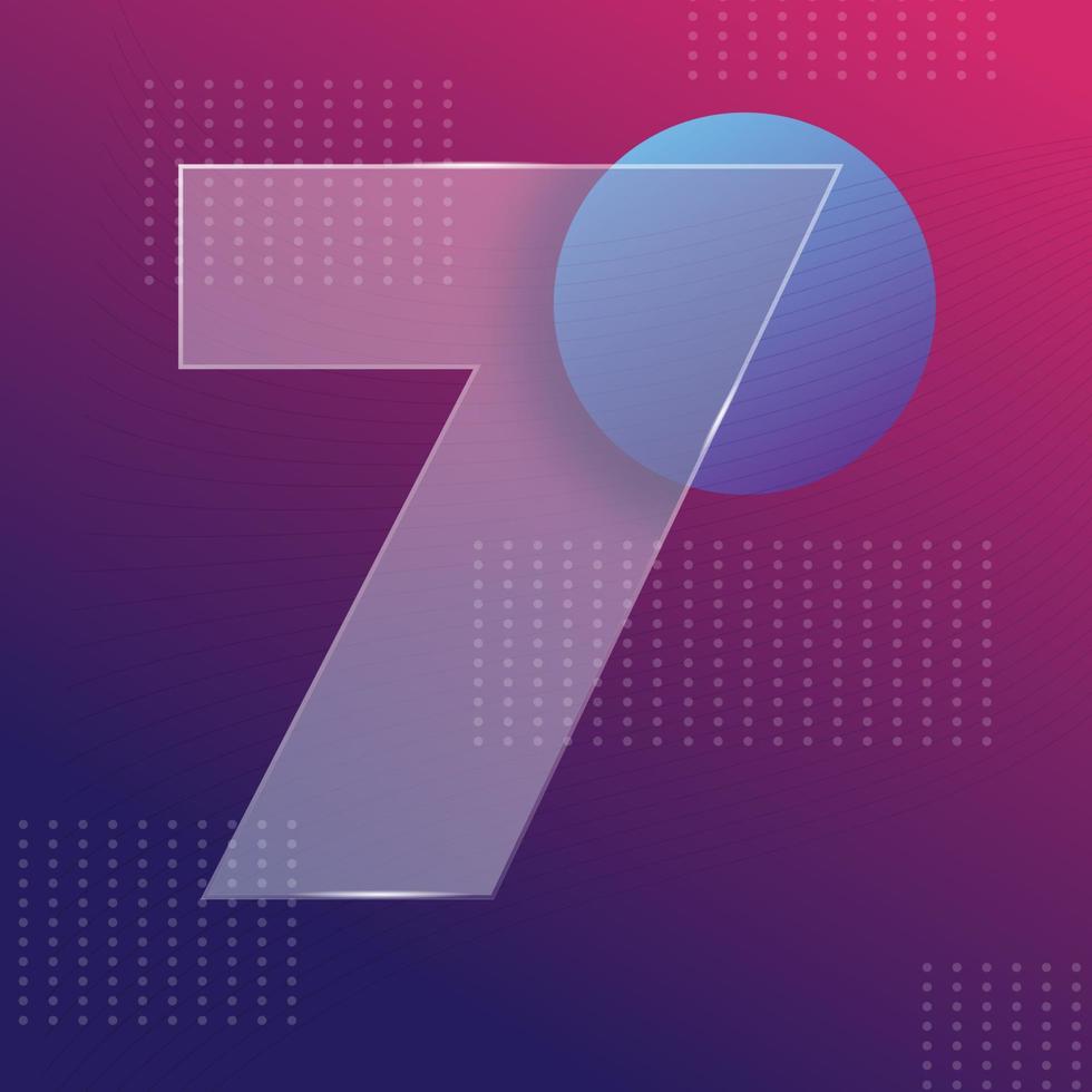 Glass morphism effect. Transparent frosted acrylic shape number 7 on purple blue gradient bacground Realistic glassmorphism matte plexiglass rectangle shapes. Futuristic style banner. Vector Pro Vector