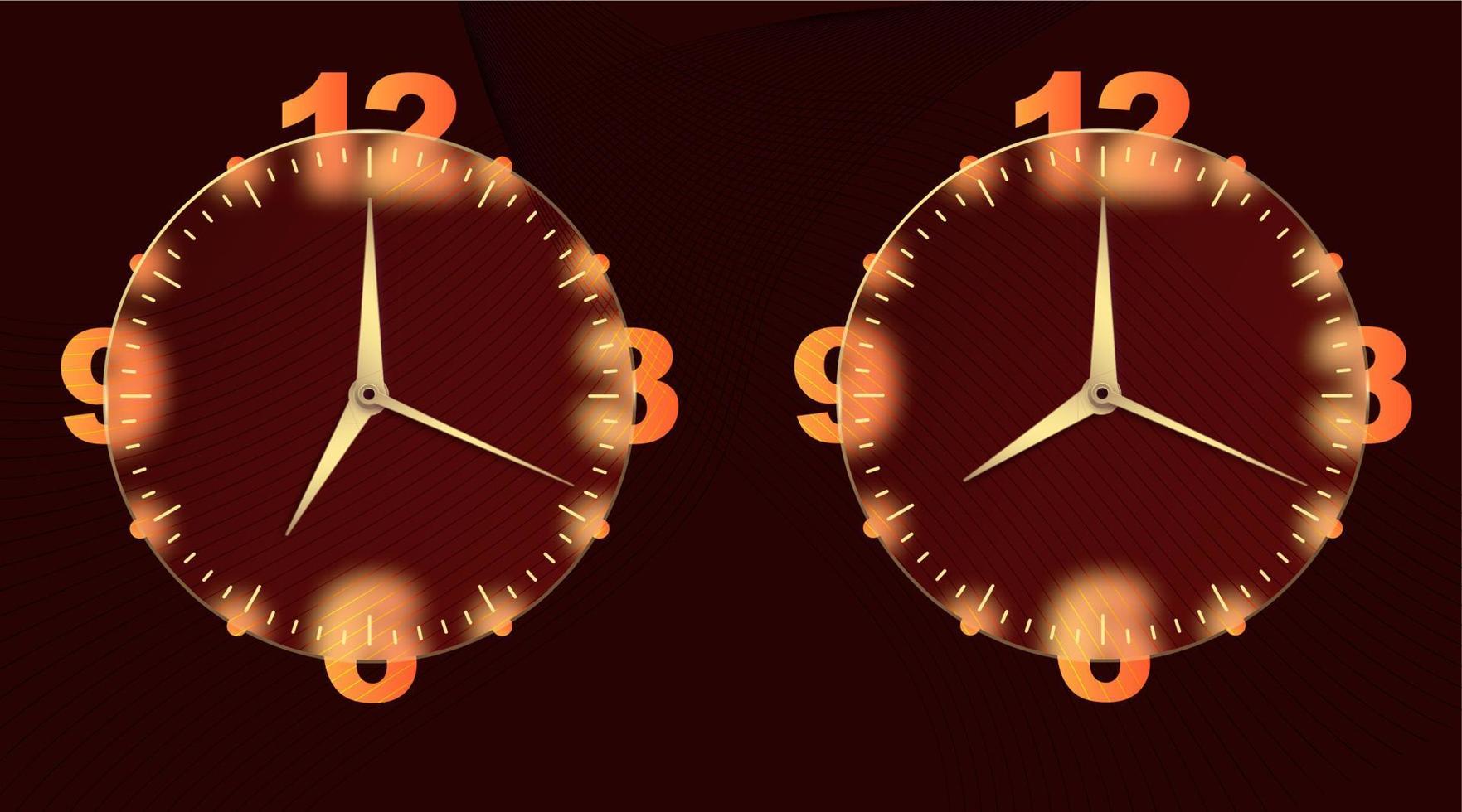 Clock glassmorphism effect. Set 3d style round timer Gold clock face and hands for mobile app design. Business icon. Modern concept background. Indication of time. Vector illustration Pro Vector