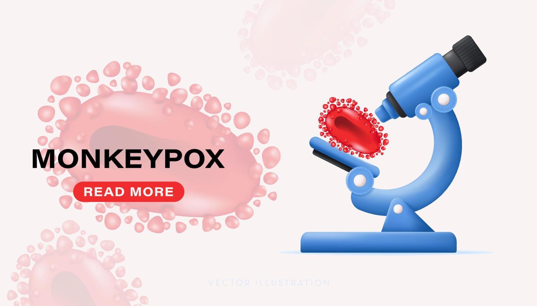 Monkeypox on microscope. Monkeypox virus outbreak concept, monkeypox cells. Vector illustration in 3D realistic style Pro Vector