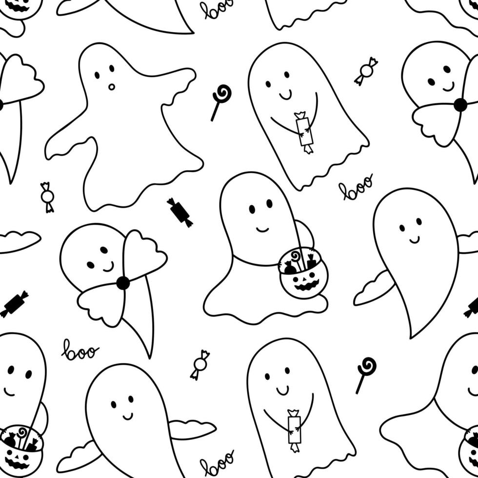 a pattern from a set of ghosts drawn with a thin line on a white background. Vector Pro Vector