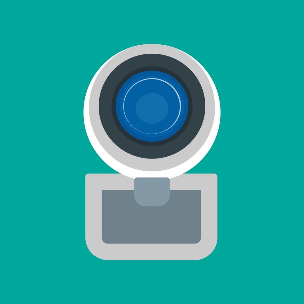 Web camera front view vector icon digital technology equipment video. Cam lens device conference network chat Pro Vector