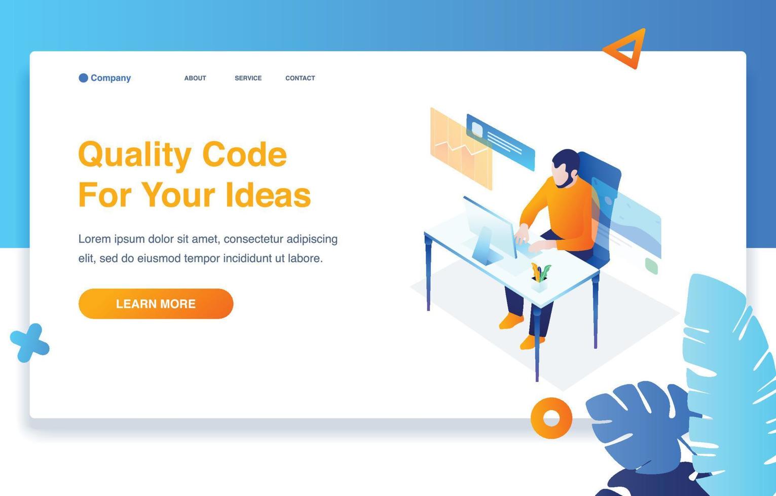 Man At Desk Doing Some Tasks On Computer Pro Vector