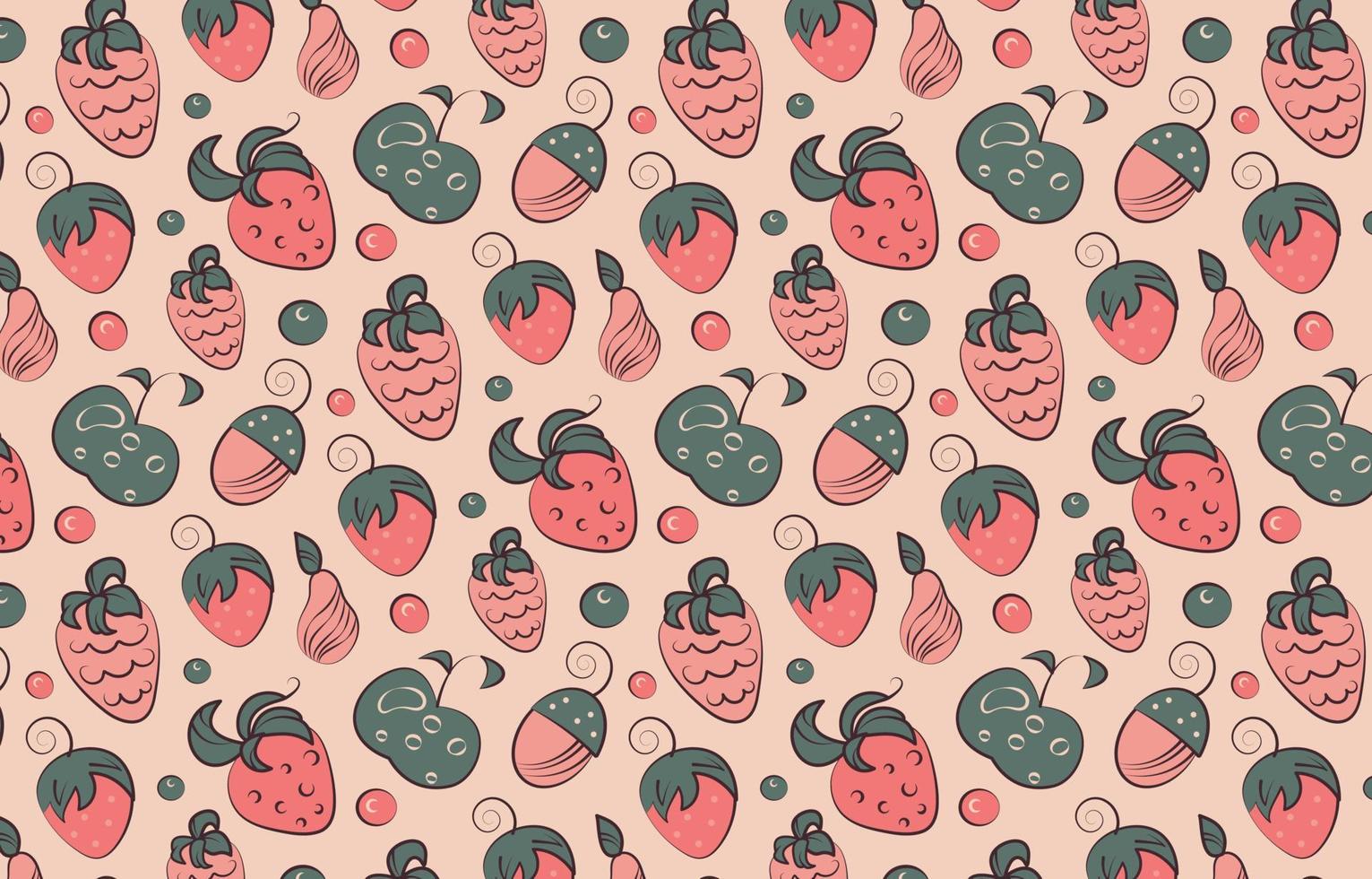 Cute pattern with different berries with background. Berry pattern on pink background. Vector illustration Pro Vector