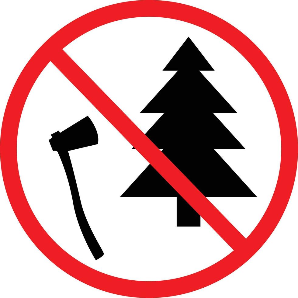 do not cut down trees sign on white background. cut trees forbidden. save forest icon. Stop cutting down live trees for. flat style. Pro Vector
