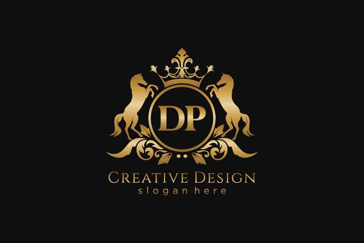 initial DP Retro golden crest with circle and two horses, badge template with scrolls and royal crown - perfect for luxurious branding projects Pro Vector and Pro SVG