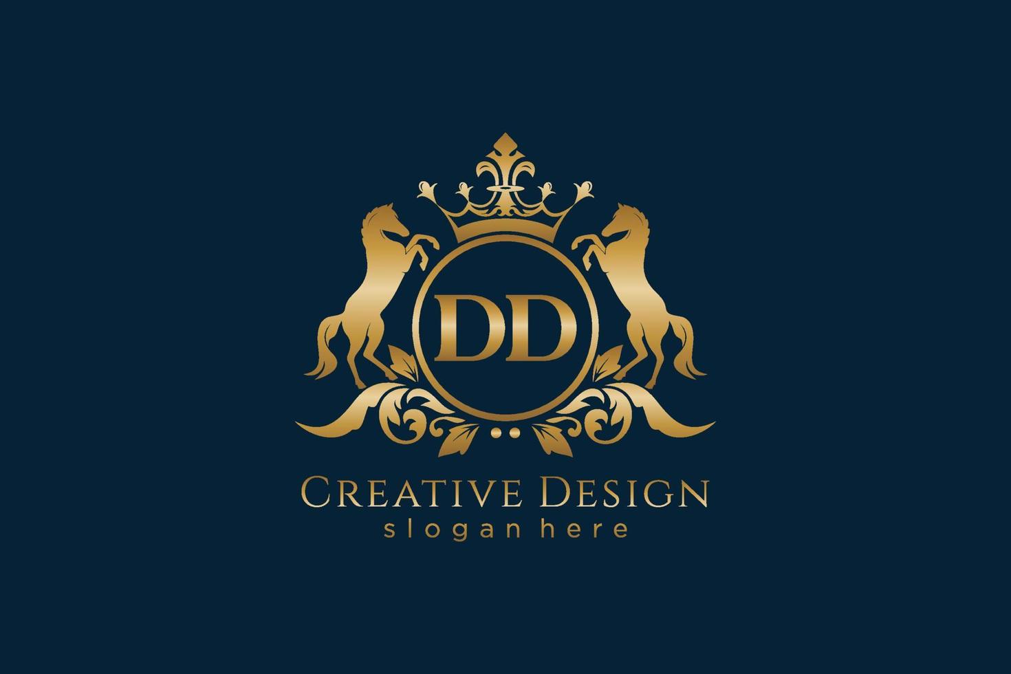 initial DD Retro golden crest with circle and two horses, badge template with scrolls and royal crown - perfect for luxurious branding projects Pro Vector and Pro SVG