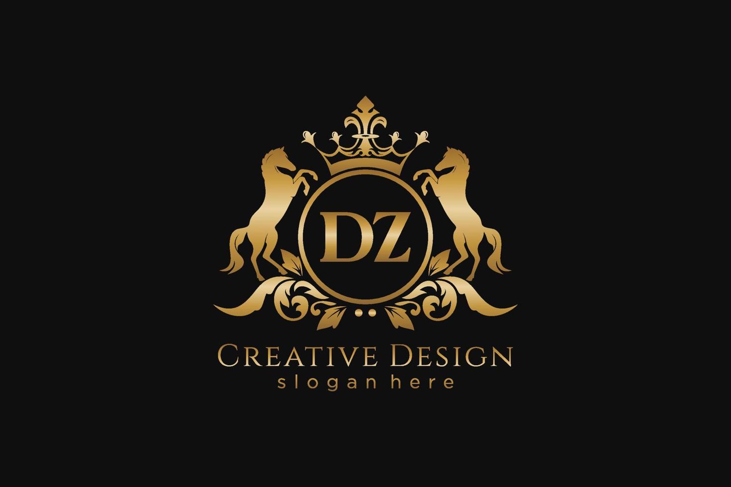 initial DZ Retro golden crest with circle and two horses, badge template with scrolls and royal crown - perfect for luxurious branding projects Pro Vector and Pro SVG