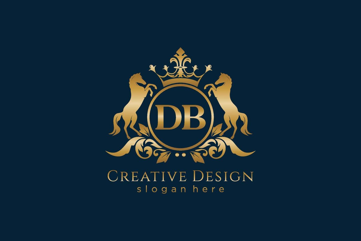 initial DB Retro golden crest with circle and two horses, badge template with scrolls and royal crown - perfect for luxurious branding projects Pro Vector and Pro SVG