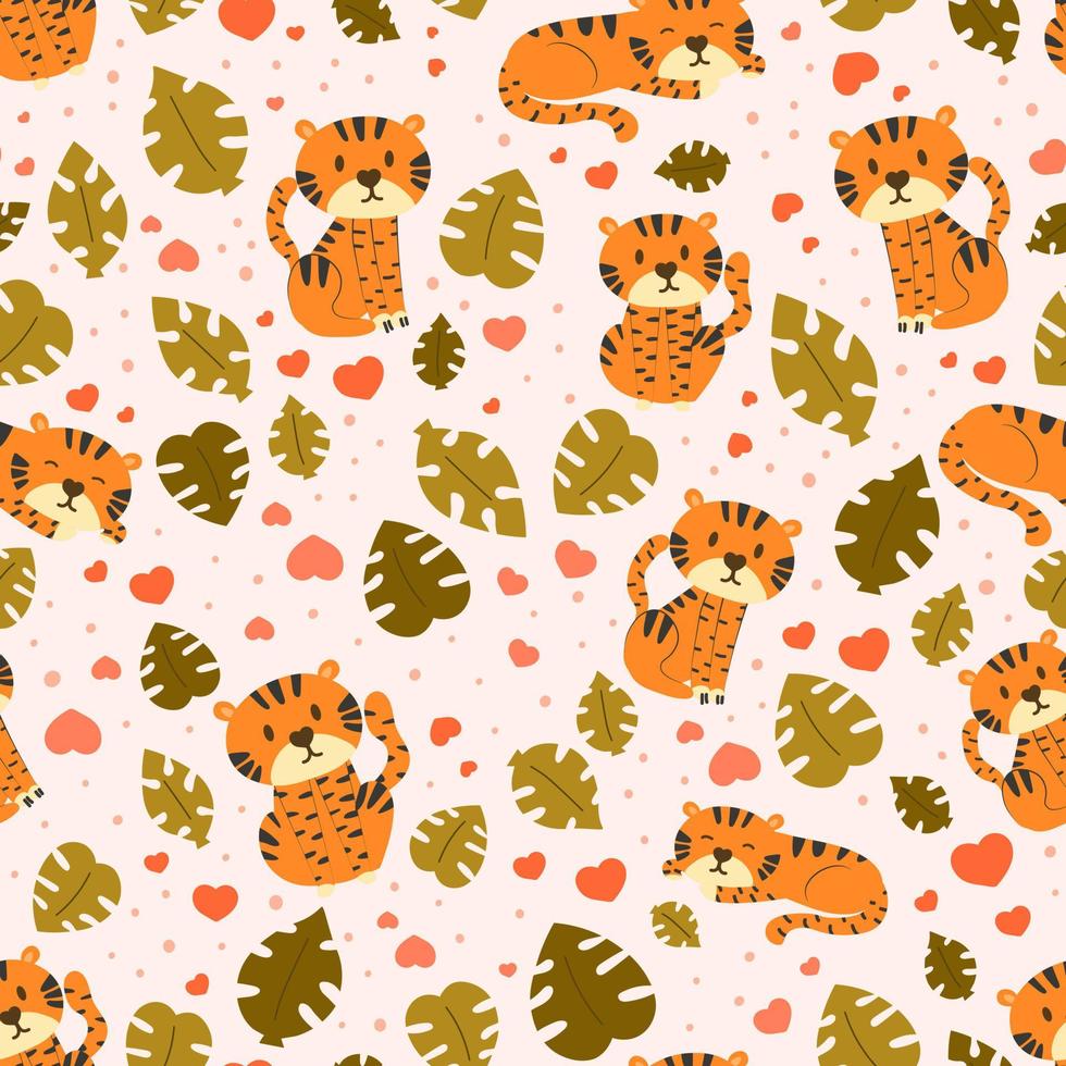 Cute safari pattern with cyte tiger character in different poses, ornament for bedding, textile or wrapping paper Pro Vector
